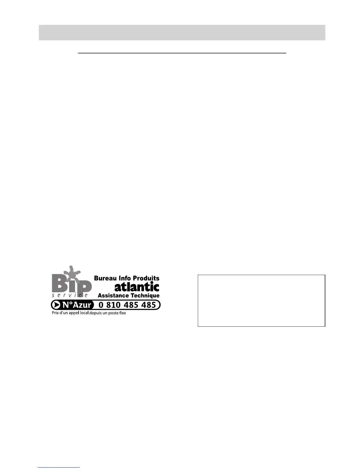 DOCUMENT A CONSERVER PAR L’UTILISATEUR