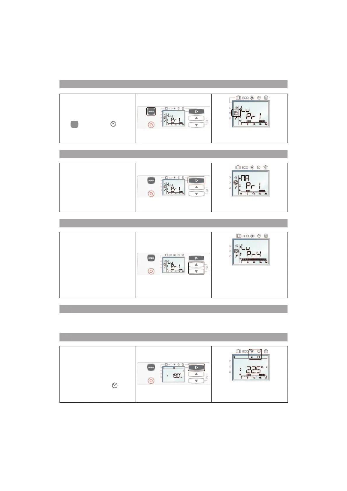 programme P1 du lundi : appuyez