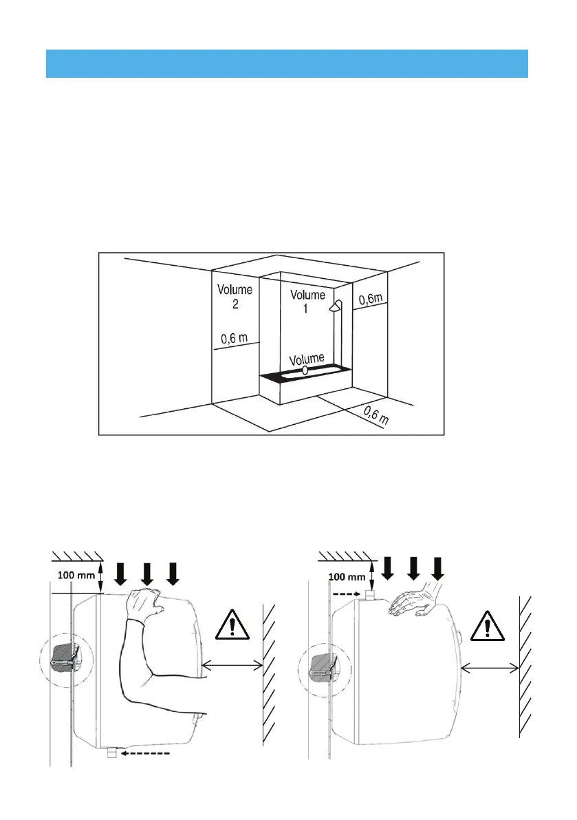 • Installatie in een badkamer: Er zijn 4 volumes gedefinieerd voor het plaatsen van de toestellen