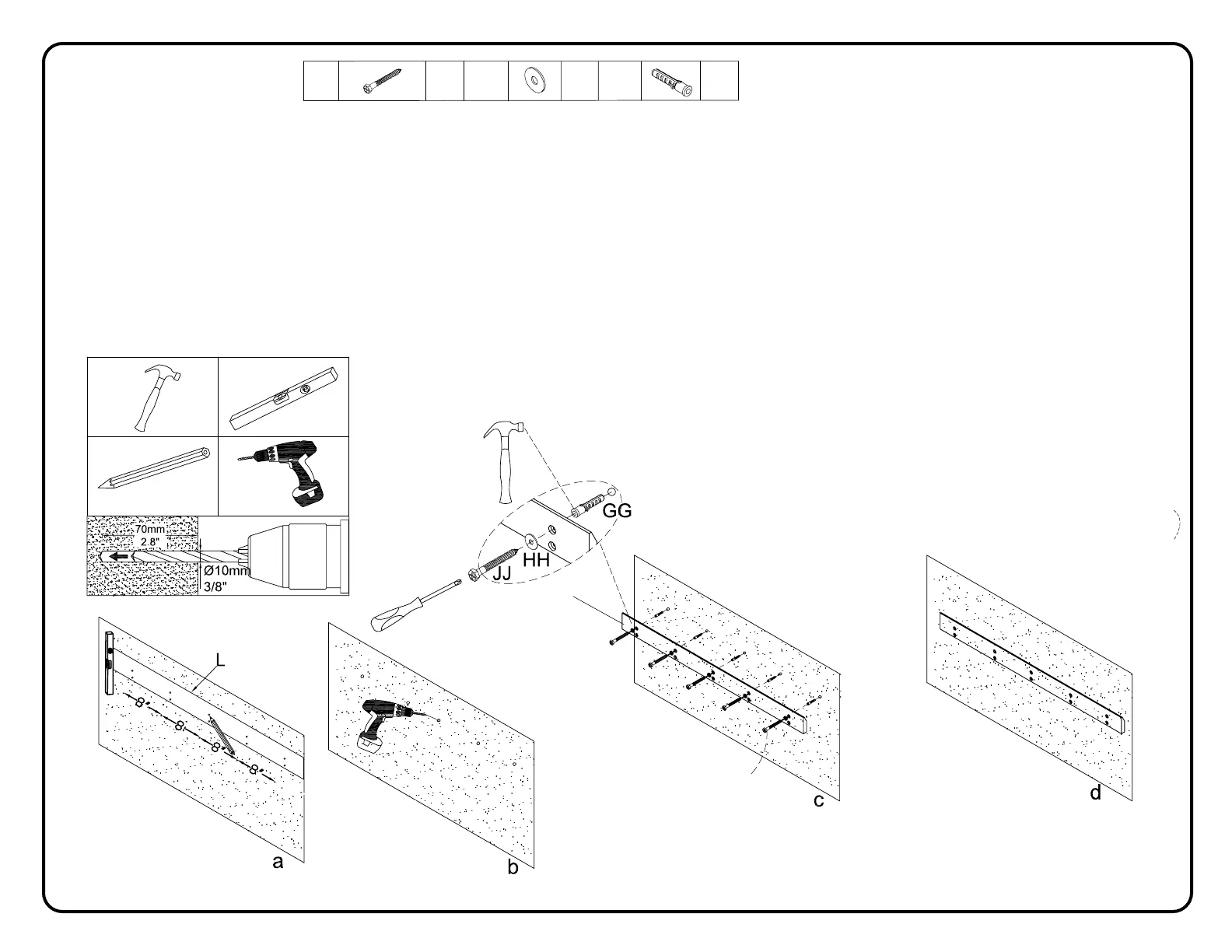 hammer to pound in four (GG) wall anchors. Use a Phillips