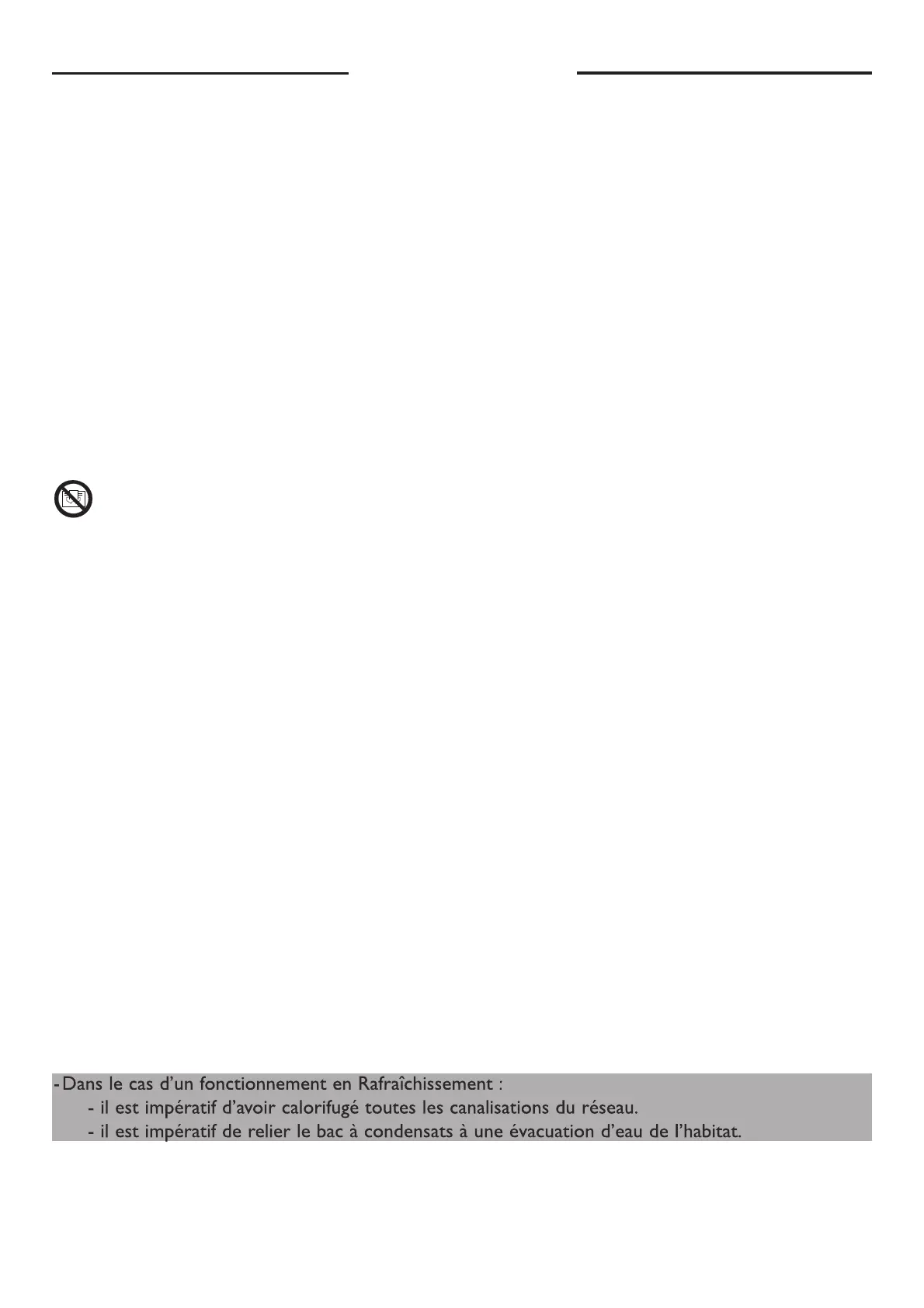 - il est impératif de relier le bac à condensats à une évacuation d’eau de l’habitat.