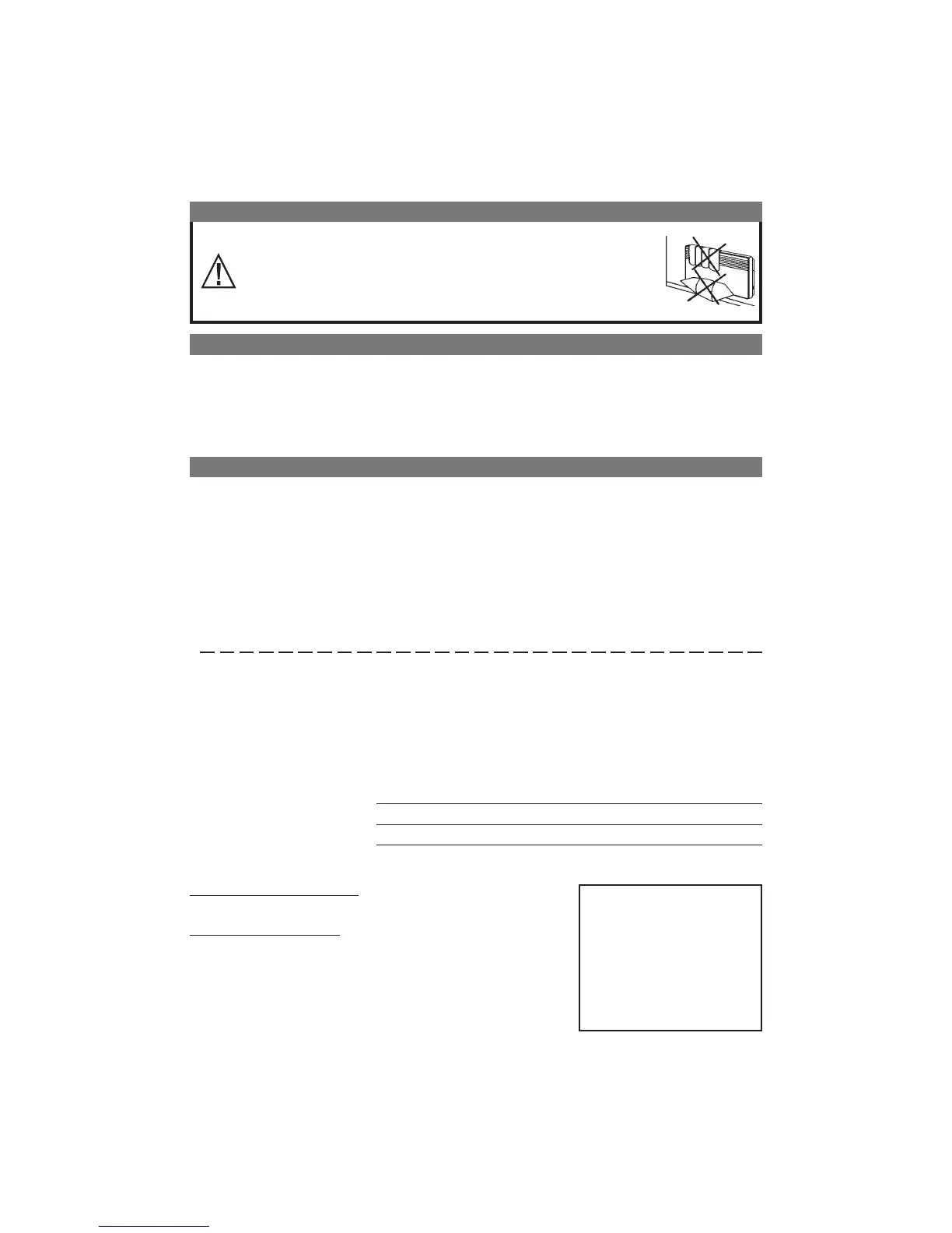 or paper in it. Do not totally or partially block the grilles on the front or inside of the appliance, as this may