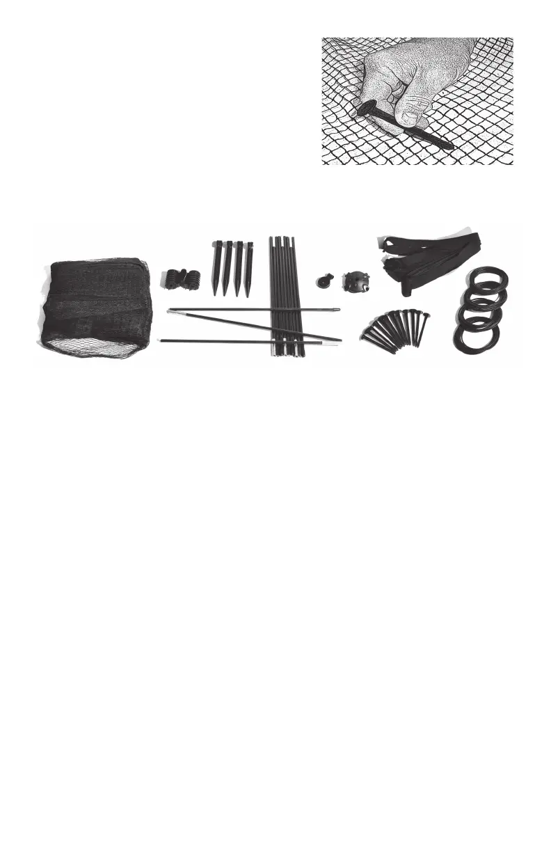 y empuje las estacas a través de los orificios de la red
