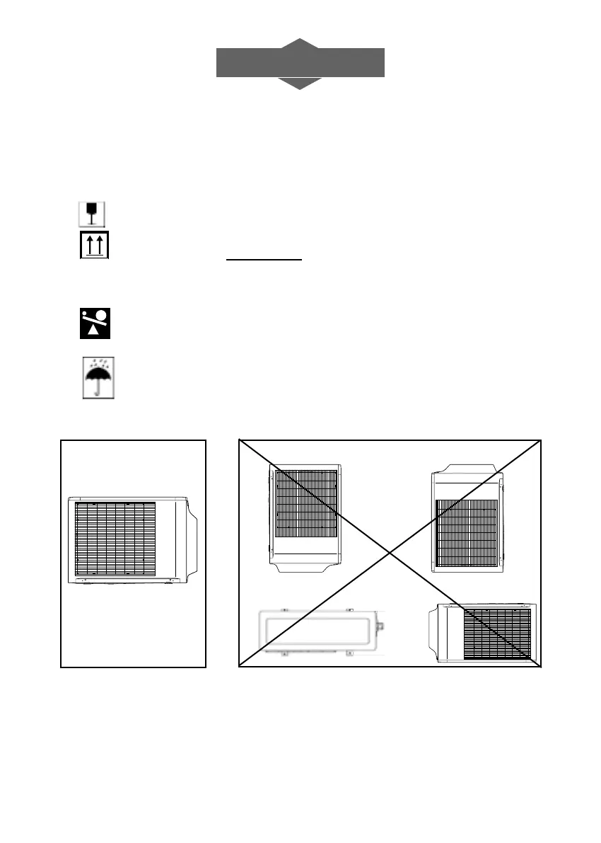 • Verplaats de buitenunit in haar originele verpakking.