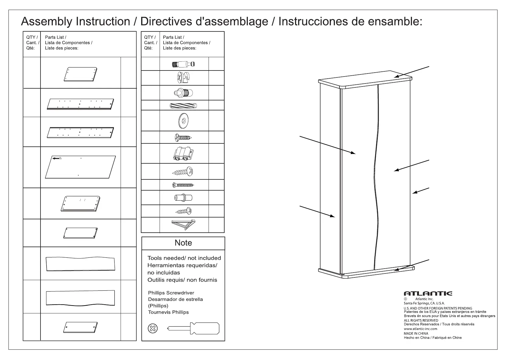 Atlantic Venus - Assembly Instructions; Parts List and Tools