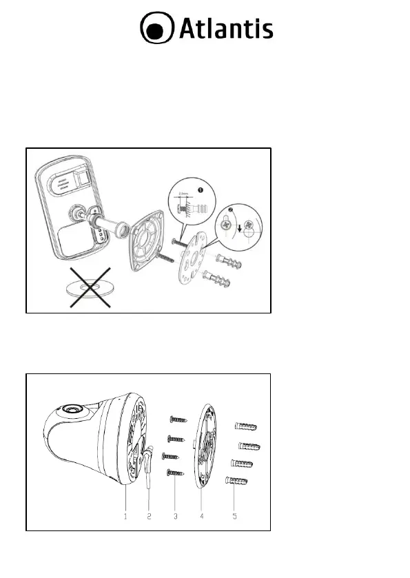 Fija el disco plastico en el muro, utilizando los 2 tornillos y los soportes incluidos.
