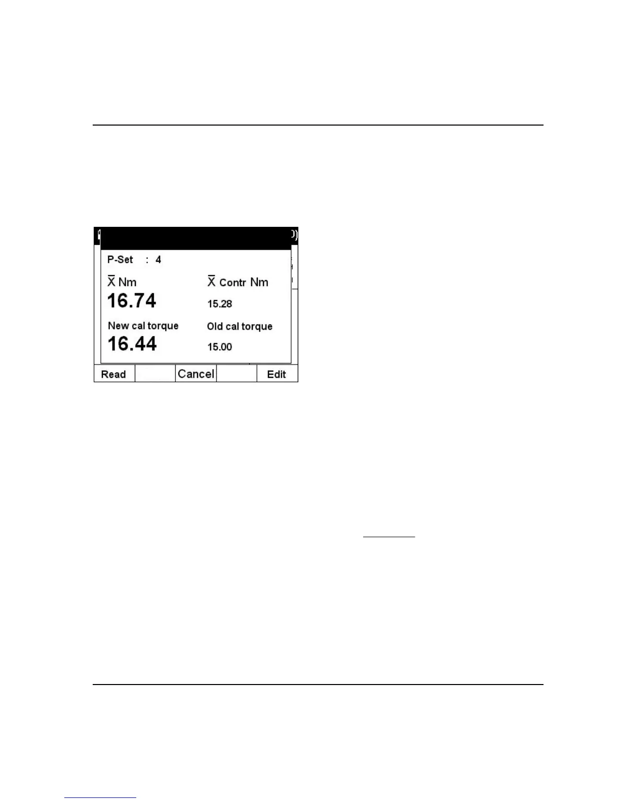 calibration torque value will be calculated. The new value can be saved in the