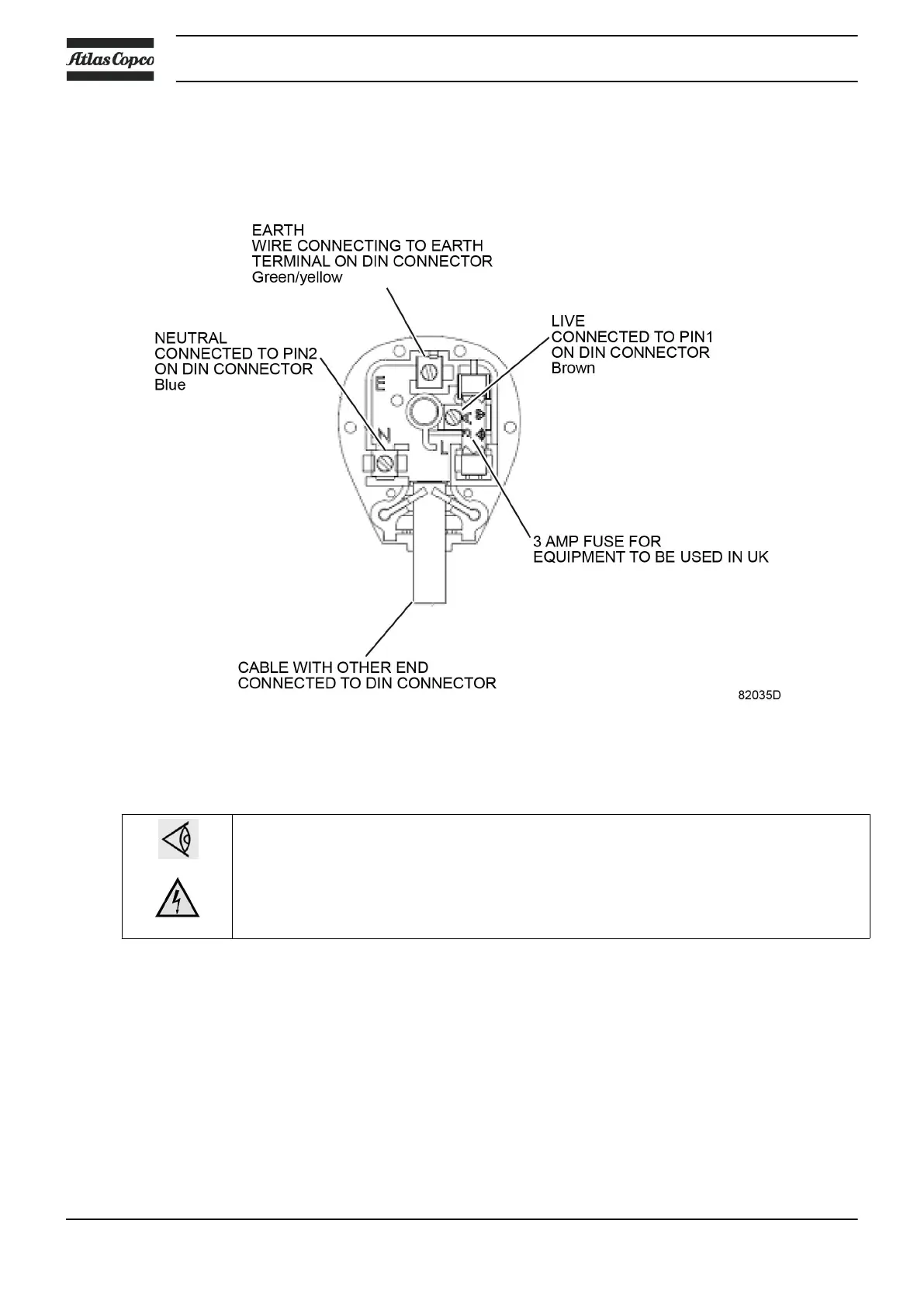 The mains cable shall be protected with a 3A fuse.