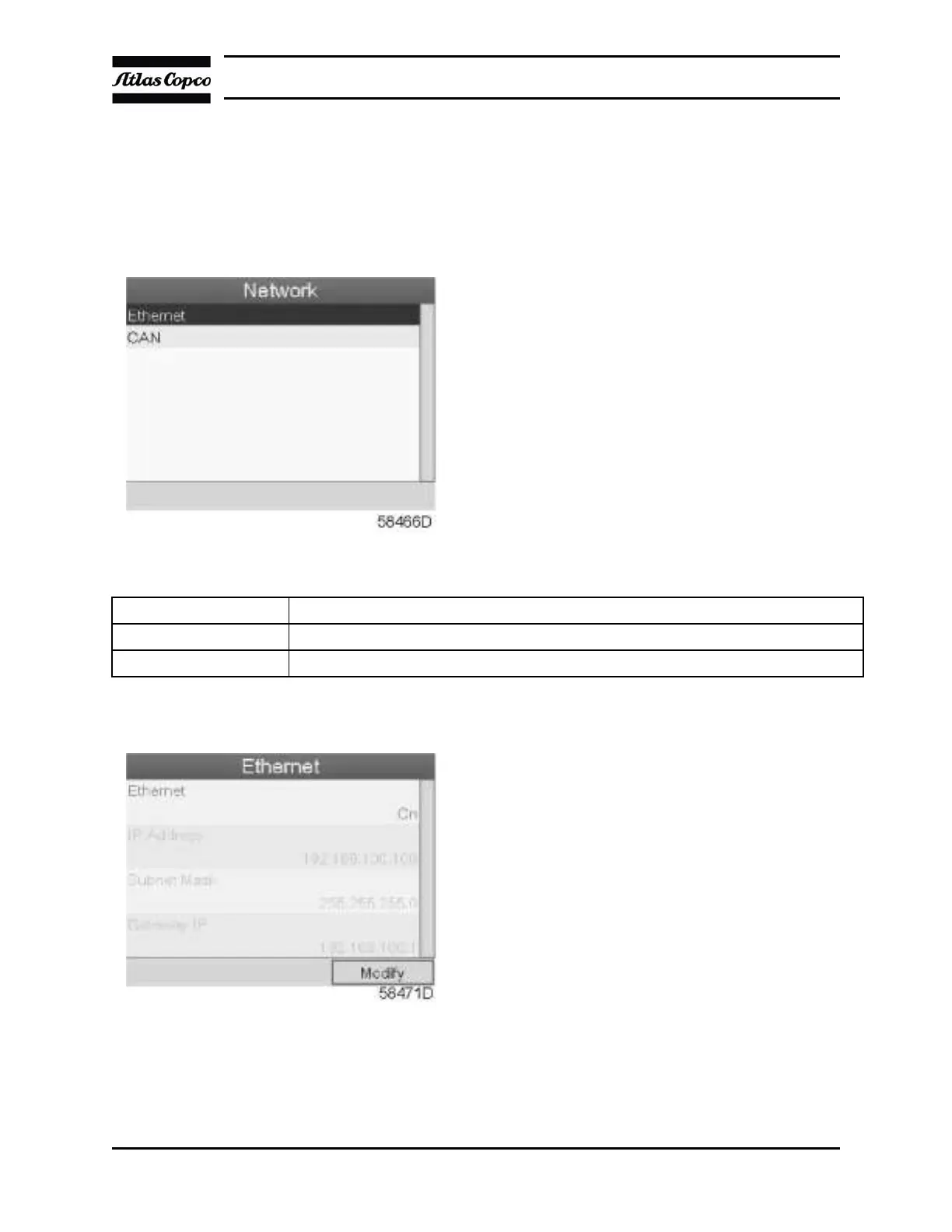 • A red selection bar is covering the first item (Ethernet). Use the J, key of the Scroll keys to