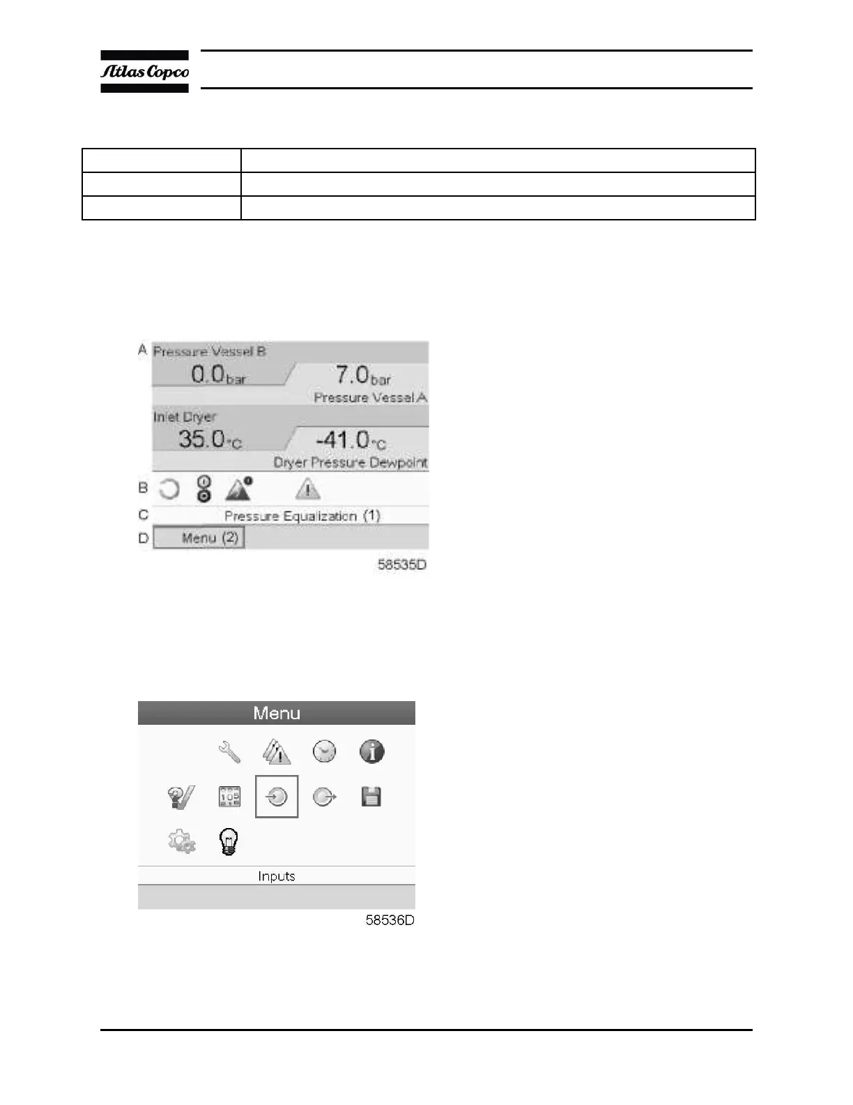 The screen shows a number of icons. Each icon indicates a menu item. By default, the Inputs
