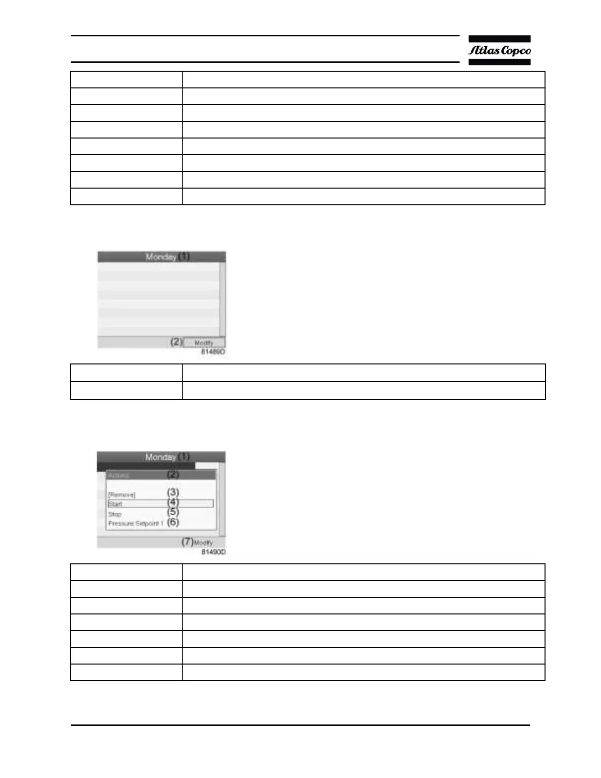 A new pop-up window opens. Select an action from this list by using the Scroll keys on the