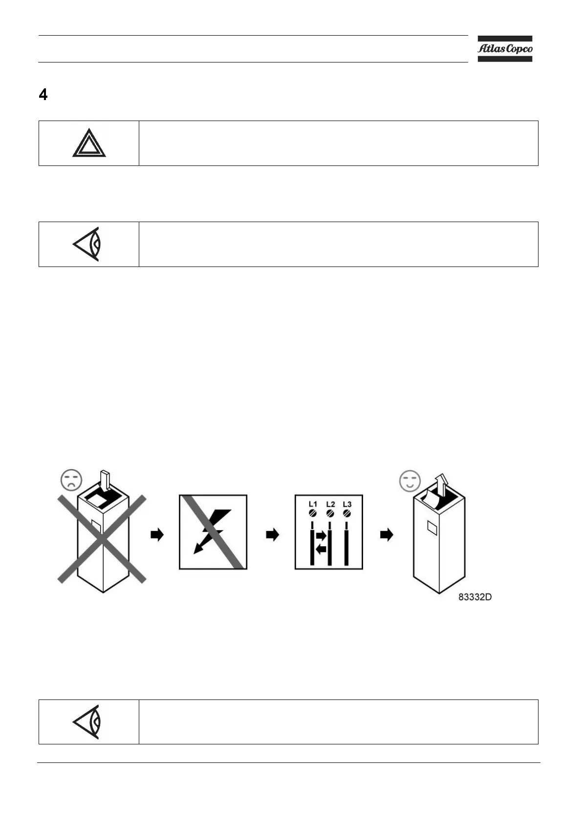 – The pump may automatically restart after voltage failure (if activated, consult Atlas Copco).