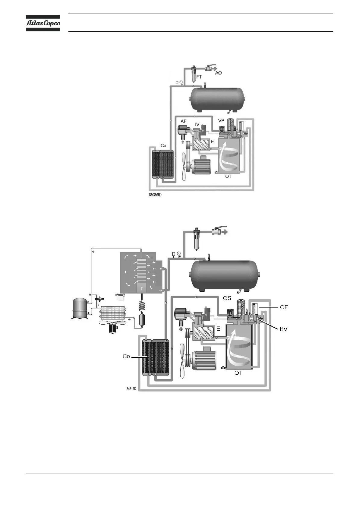 by oil separator (OS) and returns to the oil circuit via a separate line. The minimum pressure