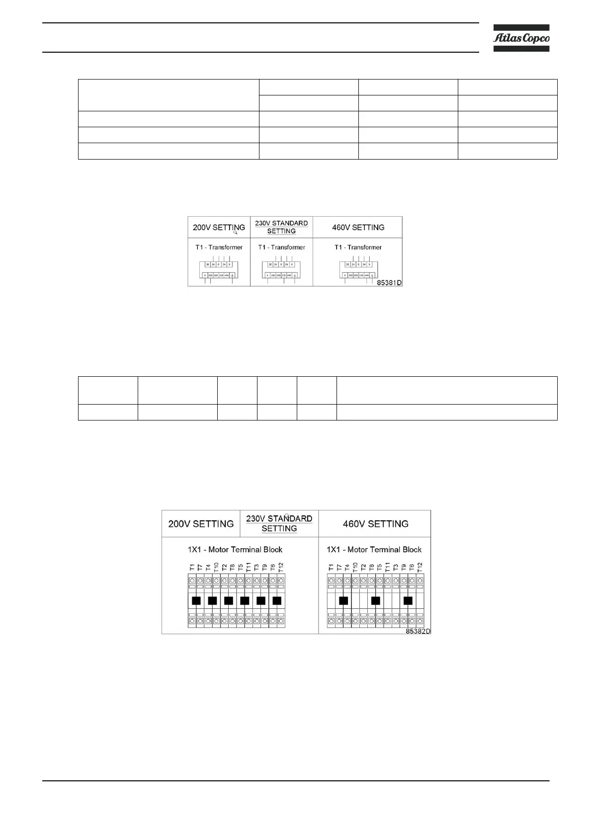 Factory standard connection is 230 V and can be changed to 200 V or 460 V.
