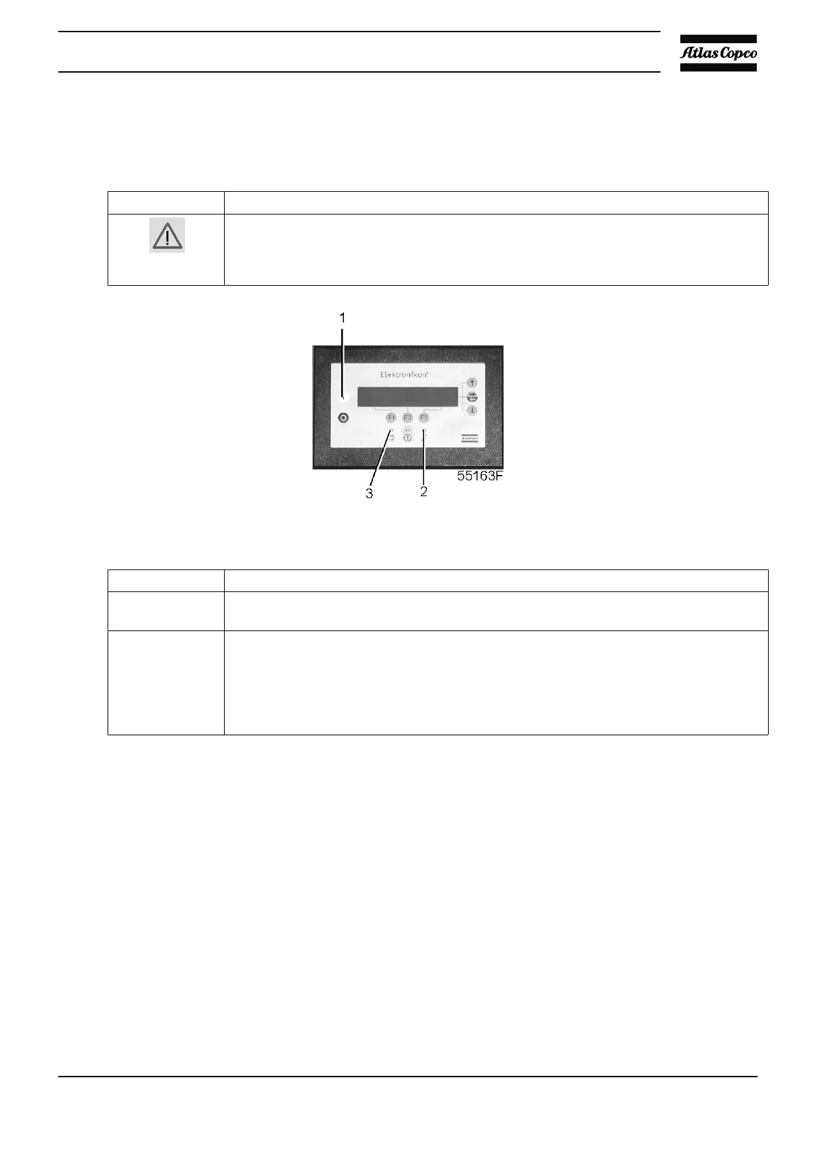 - Press start button (1). The compressor starts running and automatic operation LED (3)