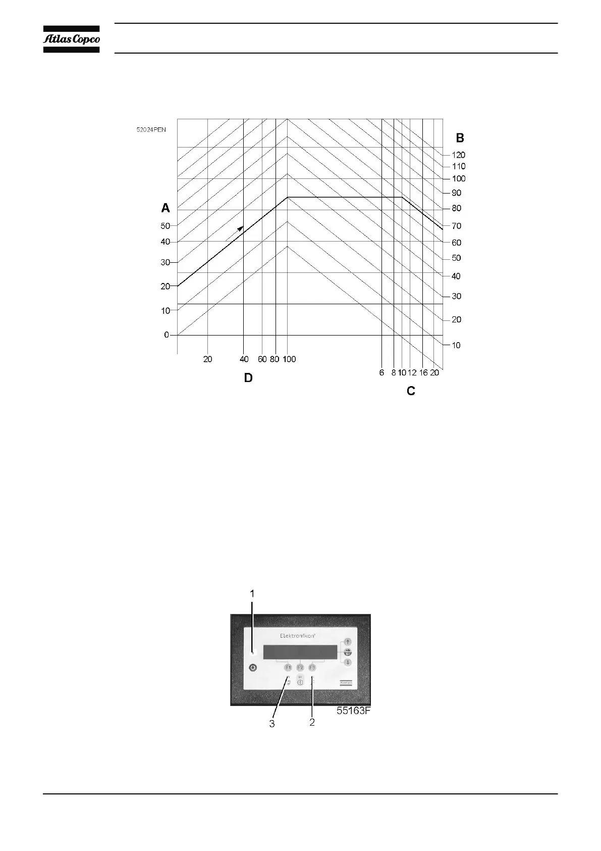 When automatic operation LED (3) is lit, the Elektronikon regulator is automatically controlling the