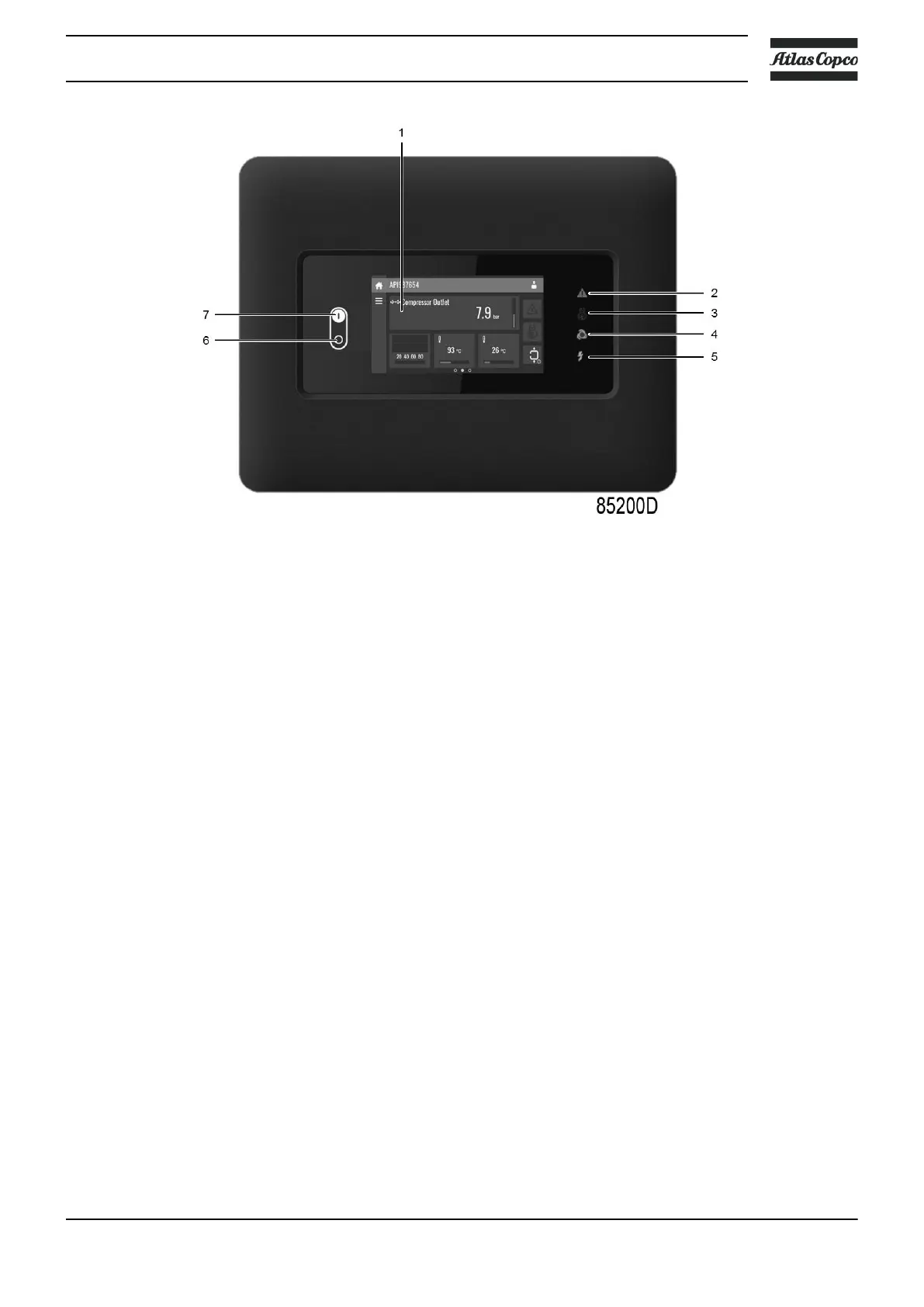 compressor outlet pressure, while the status of the compressor is indicated by pictographs.