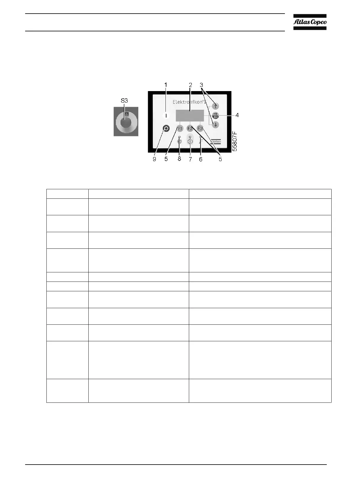 5 Function keys Keys to control and program the compressor.