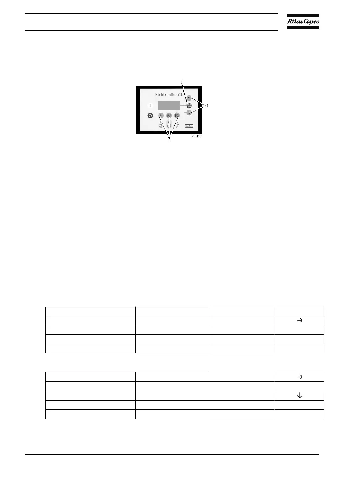 • Use the arrow down key (1) to scroll until the option ‘Clock Function’ is followed by a horizontal arrow.
