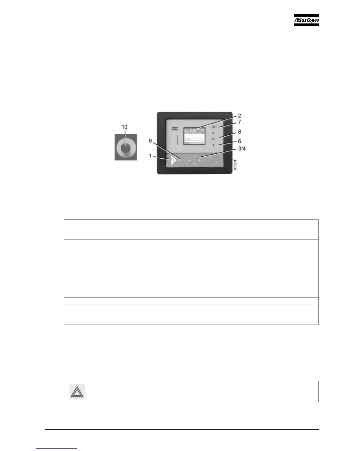 To stop the compressor in the event of an emergency, press emergency stop button (10).