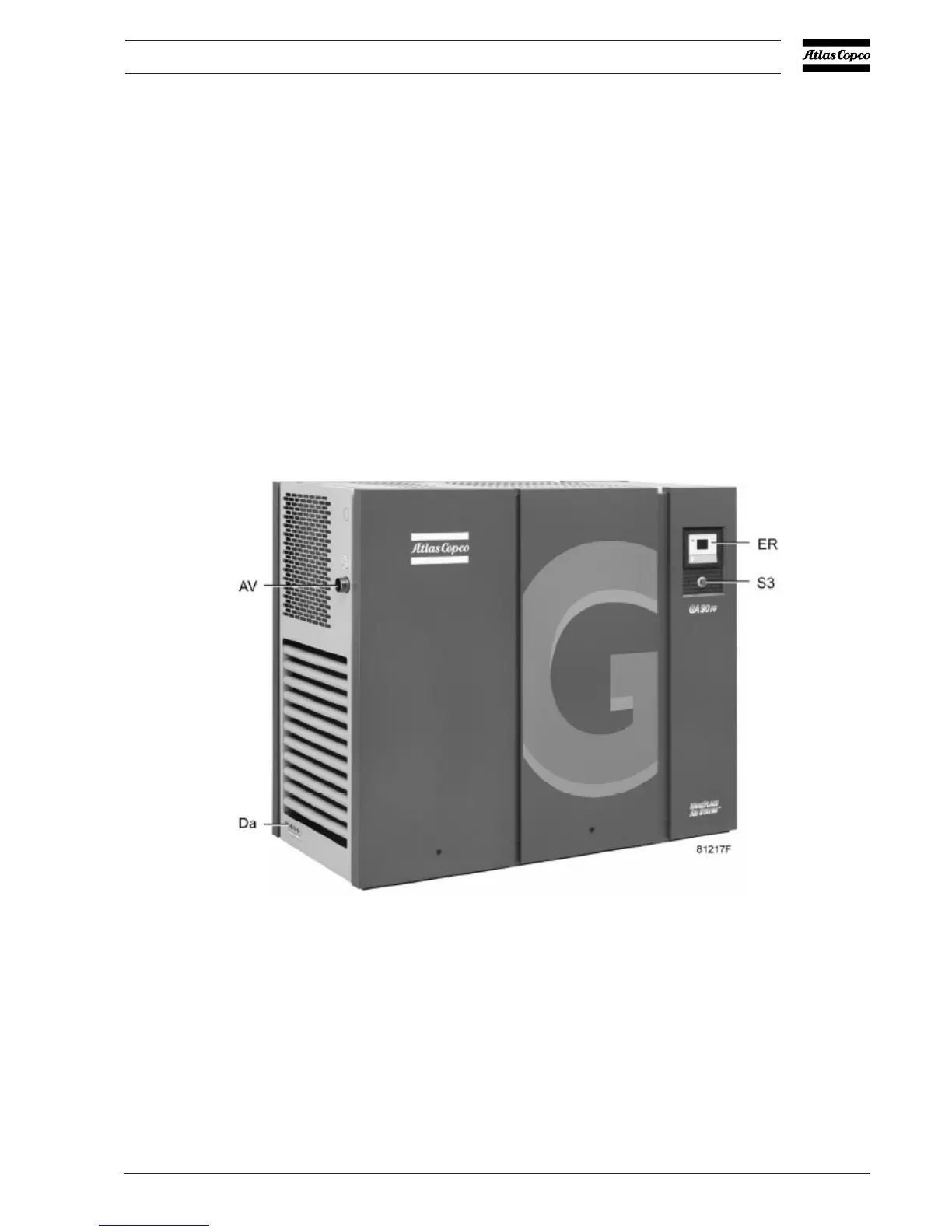 Atlas Copco Elektronikon®regulator. The electronic control module is fitted to the door on the right