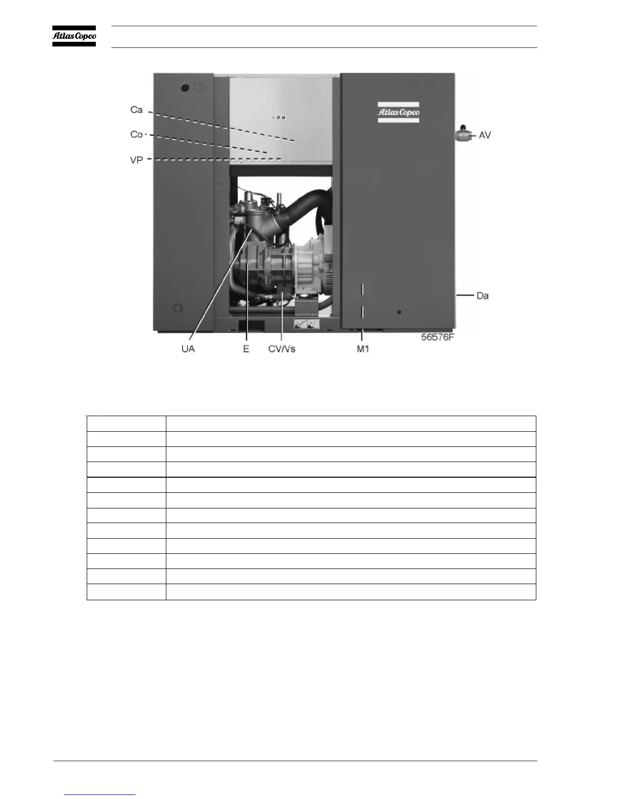 bythe Atlas Copco Elektronikon® regulator. The electronic control module is fitted to the door on the right