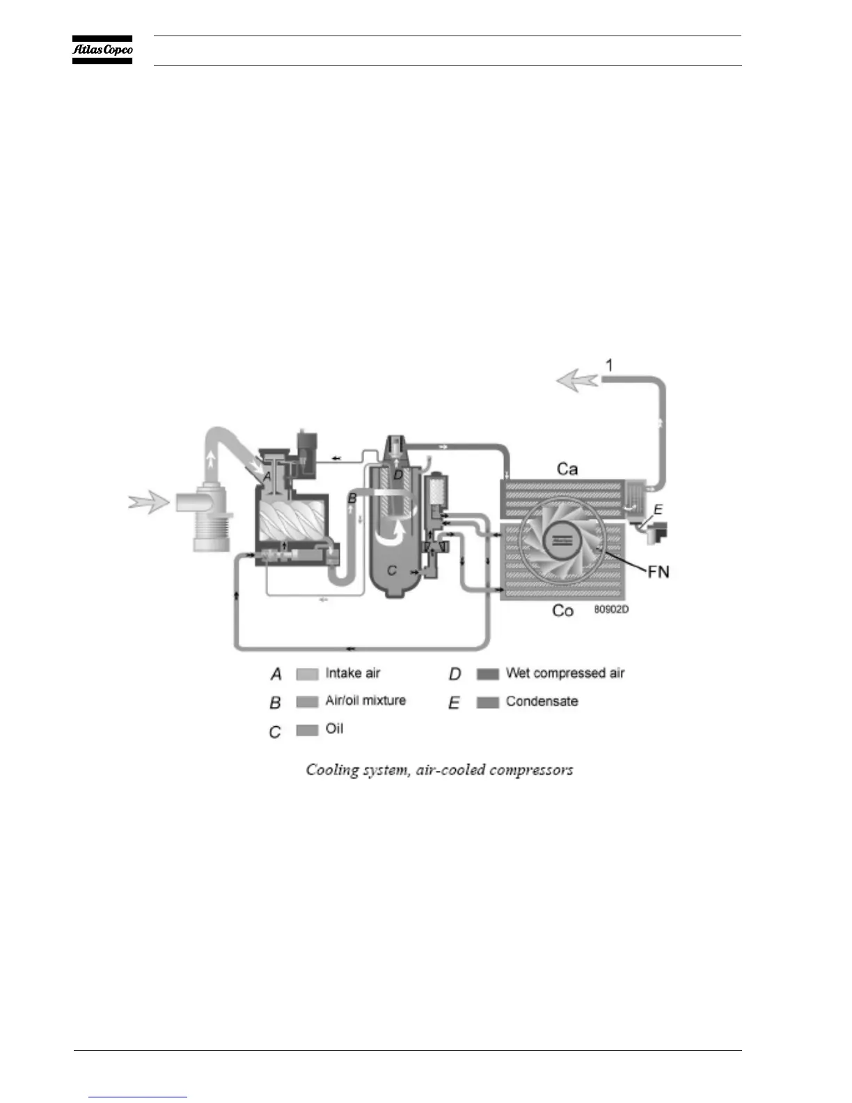 Oil stop valve (Vs) prevents the compressor element from flooding with oil when the compressor is