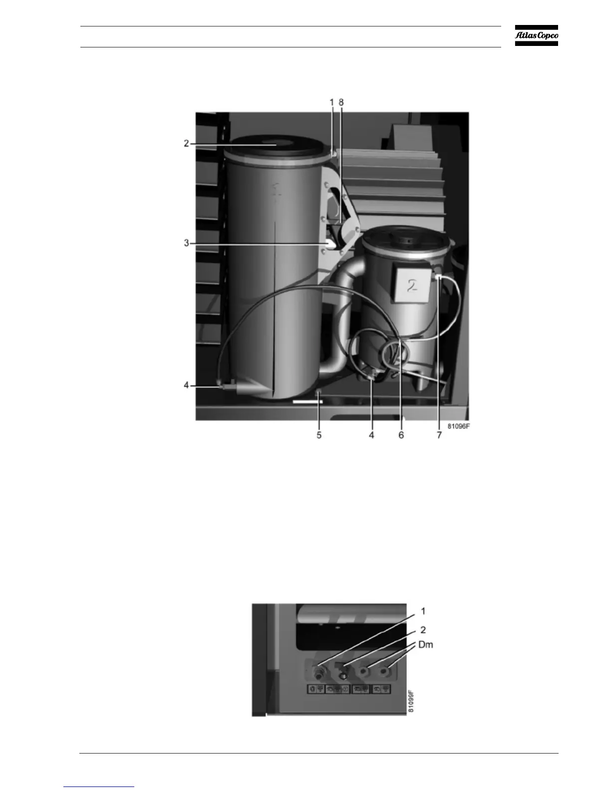 ponding threads in the drain plate at the bottom left of the compressor front panel (Drain plate). Close
