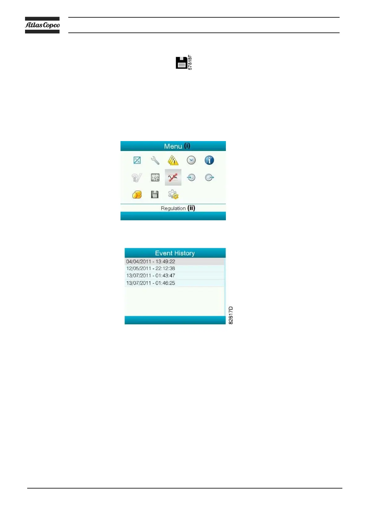 Using the Scroll keys, move the cursor to the Event History icon (see above, section Menu icon)