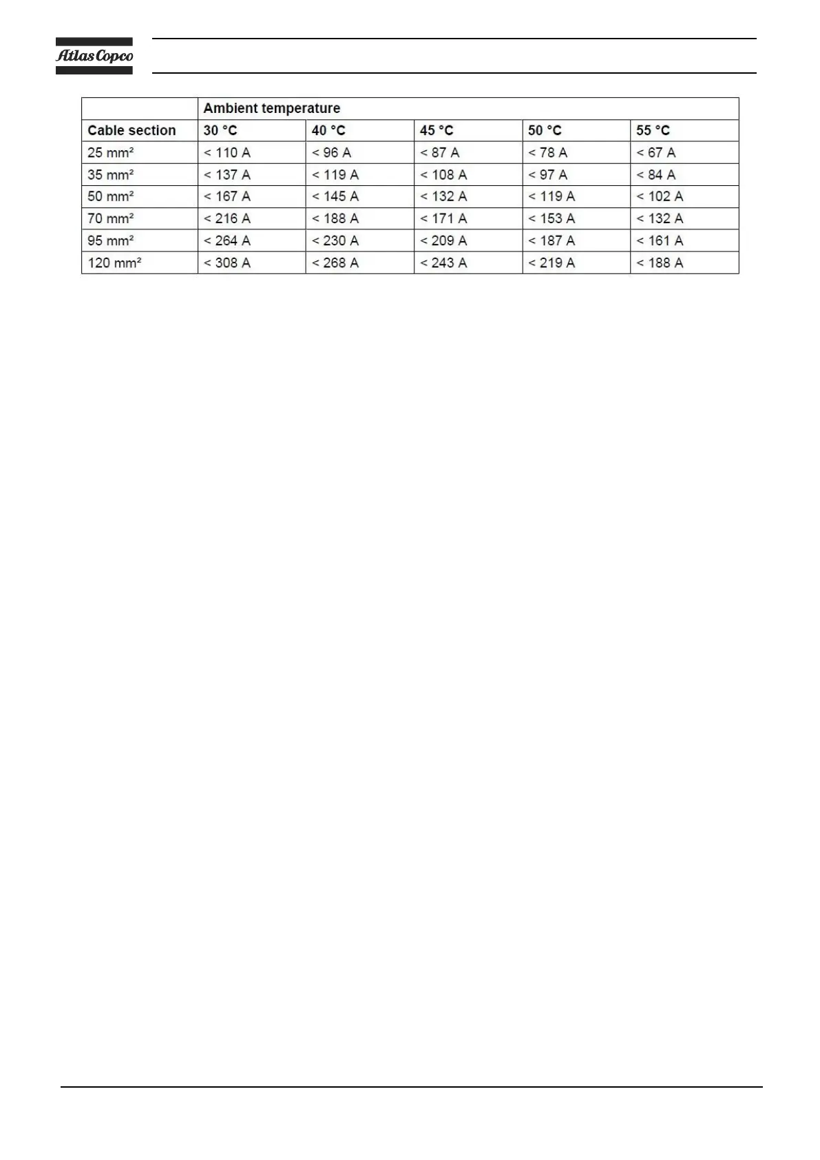 mm² cable. For a cable of 70 mm², the maximum allowed current is 118 A, which is sufficient.