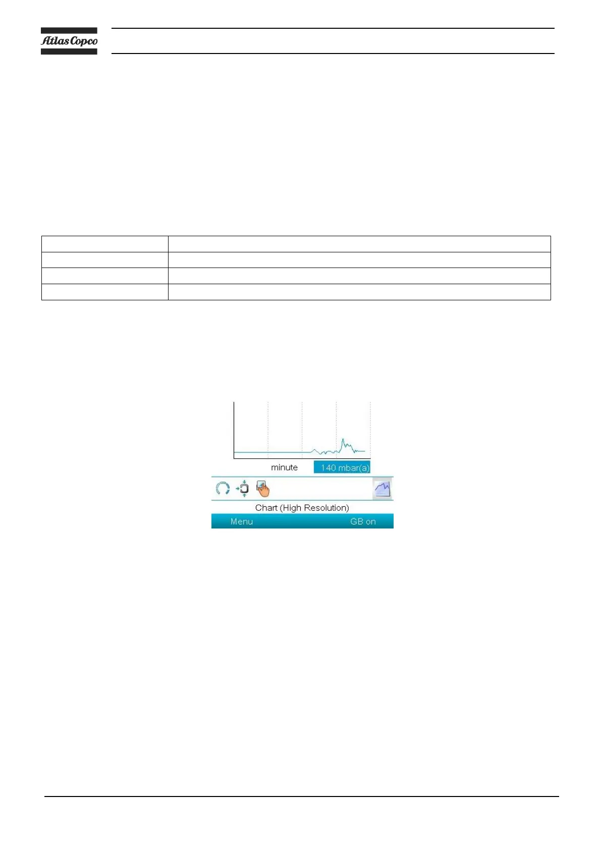 the pressure) per minute. Also the instantaneous value is displayed. The screen shows the last 4 minutes.