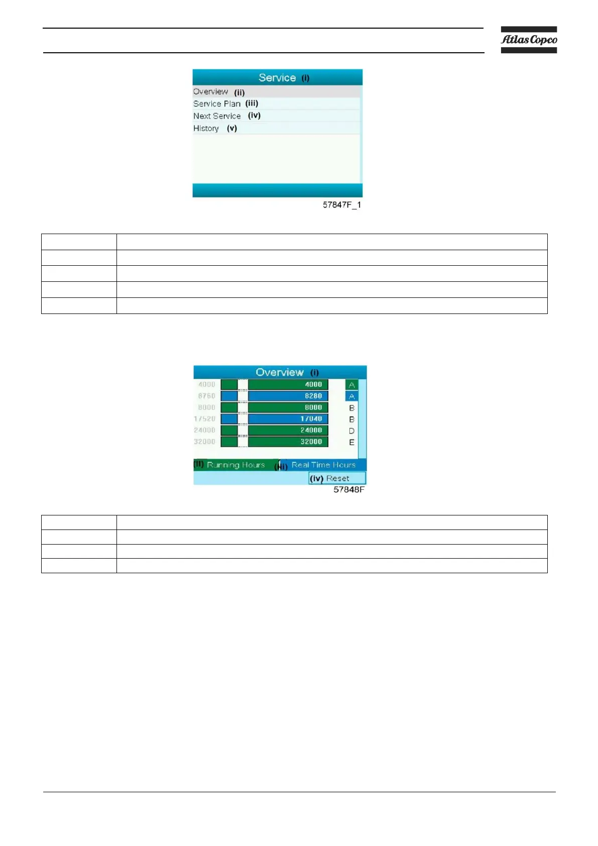The figures at the left are the programmed service intervals. For Service interval A, the programmed