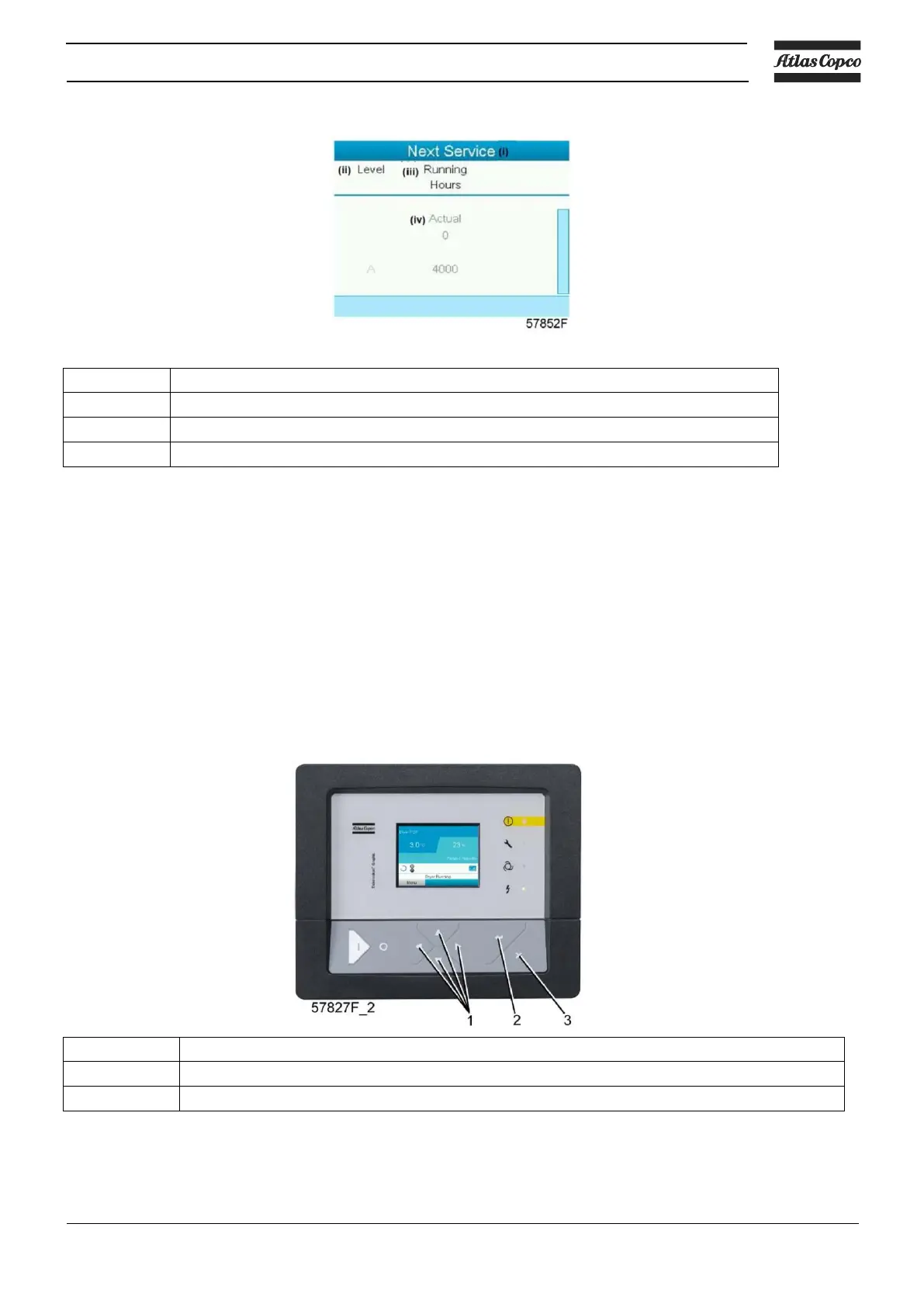 In the example above, the A Service level is programmed at 4000 running hours, of which 0 hours have