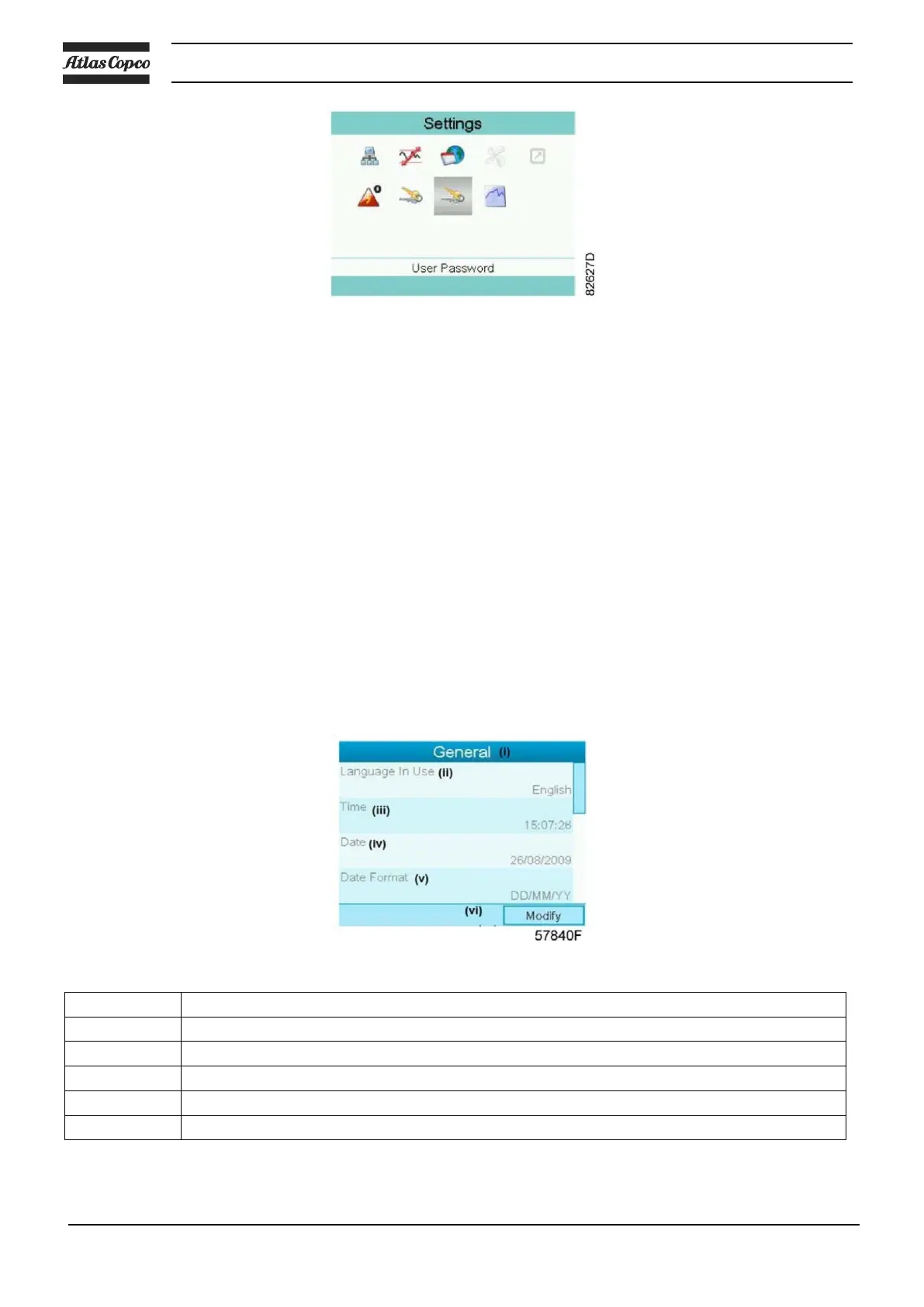 Example: Selecting the General Settings icon gives the possibility to change e.g. the language, the date,