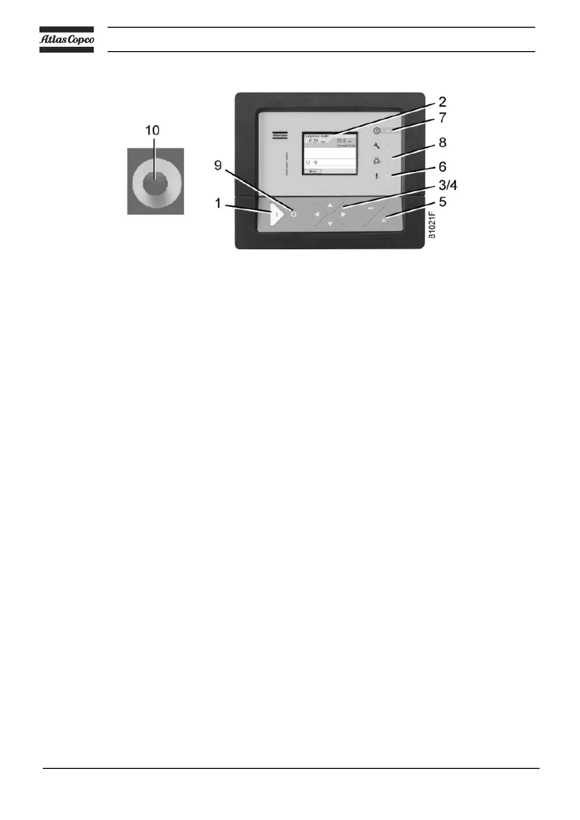 To stop the vacuum pump in the event of an emergency, press emergency stop button (10). Alarm