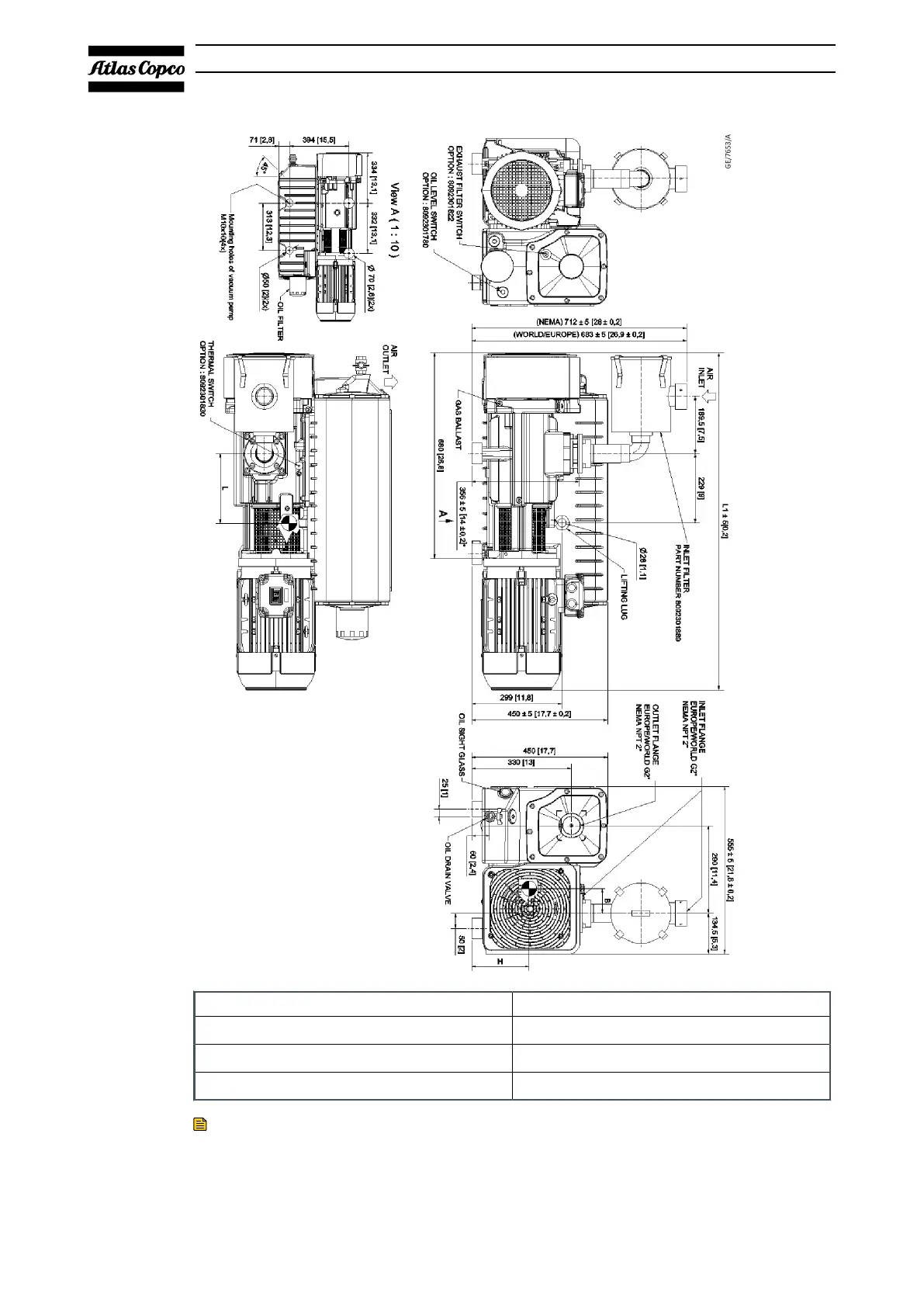 Height without inlet filter.