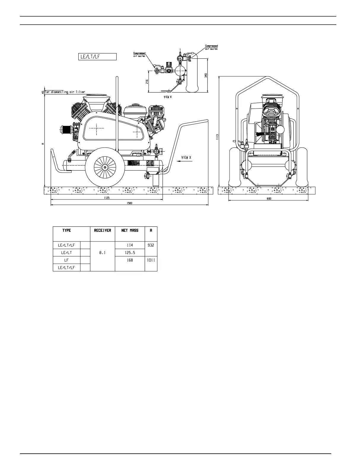 Fig. 2.20 Dimension drawing, LE/LF/LT Trolley with petrol engine