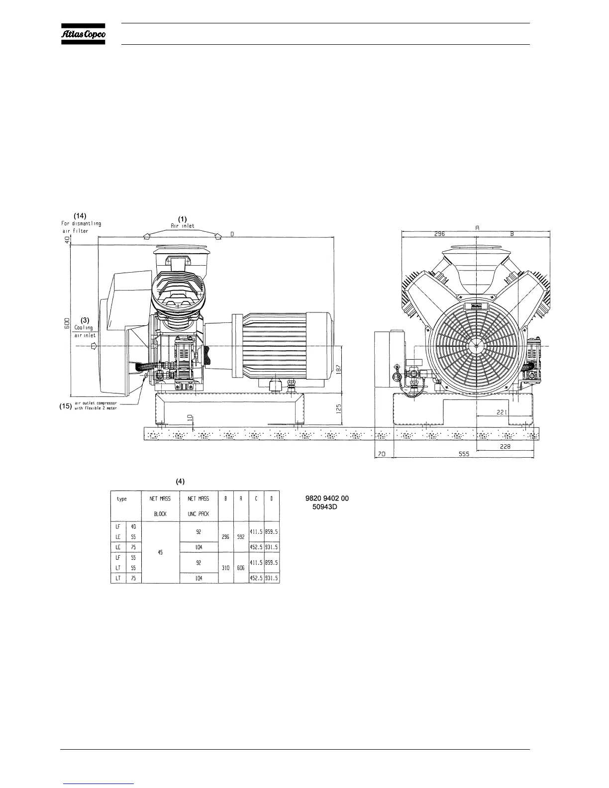 Fig. 2.11 Dimension drawing, LE/LT55/75 and LF40/55 Unsilenced Pack