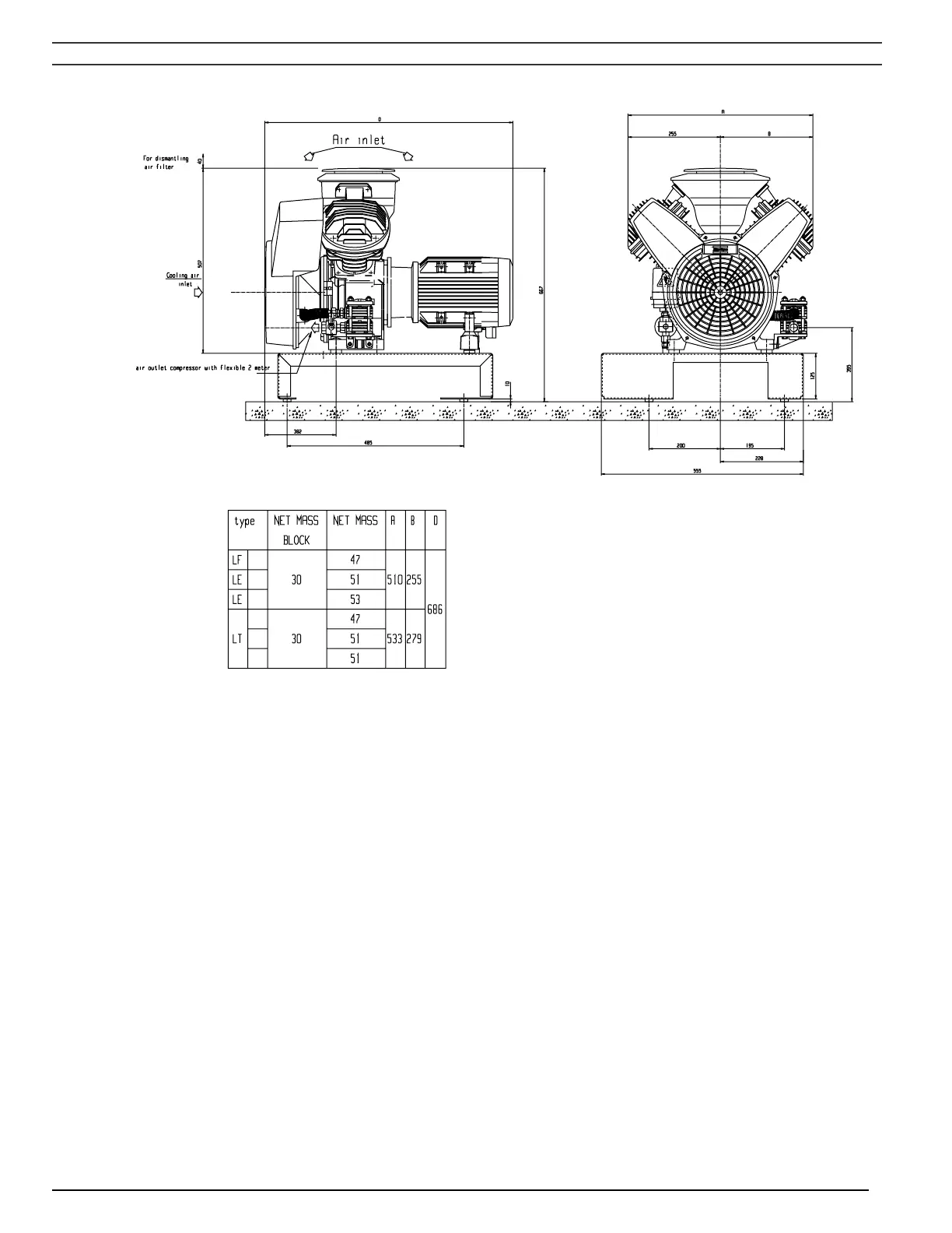 Fig. 2.5 Dimension drawing, LE/LT2 up to -5 and LF2 Base-mounted