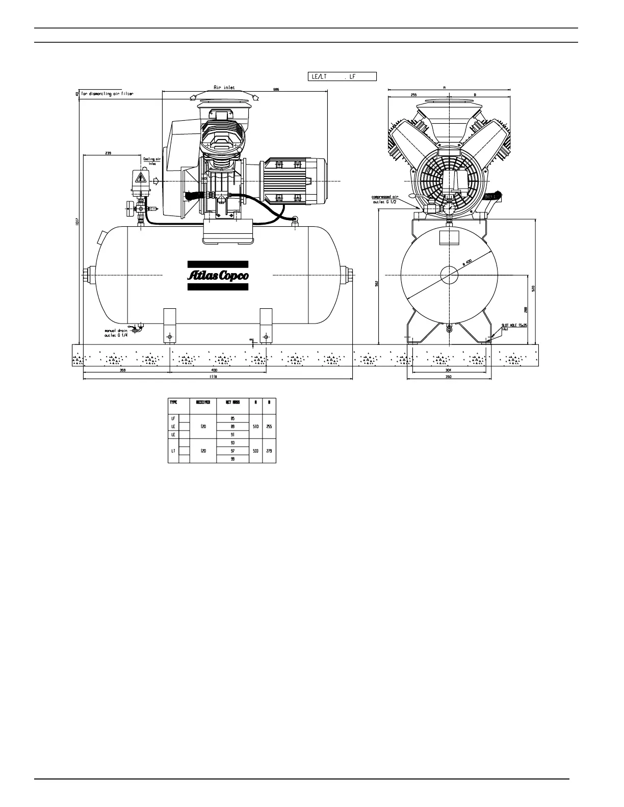 Fig. 2.11 Dimension drawing, Tank-mounted LE/LT2 up to -5 and LF2, -3 (horizontal 120 l receiver)