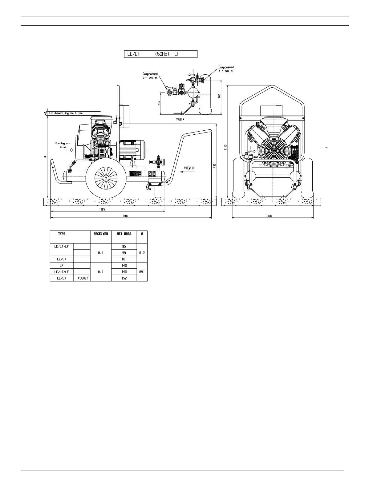 Fig. 2.19 Dimension drawing, LE/LF/LT Trolley with electrical motor