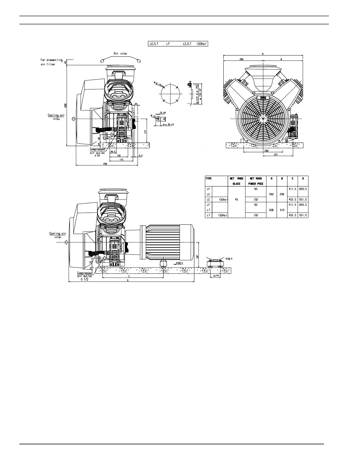 Fig. 2.2 Dimension drawing, LE/LT7, -10 and LF5, -7 Power Pack