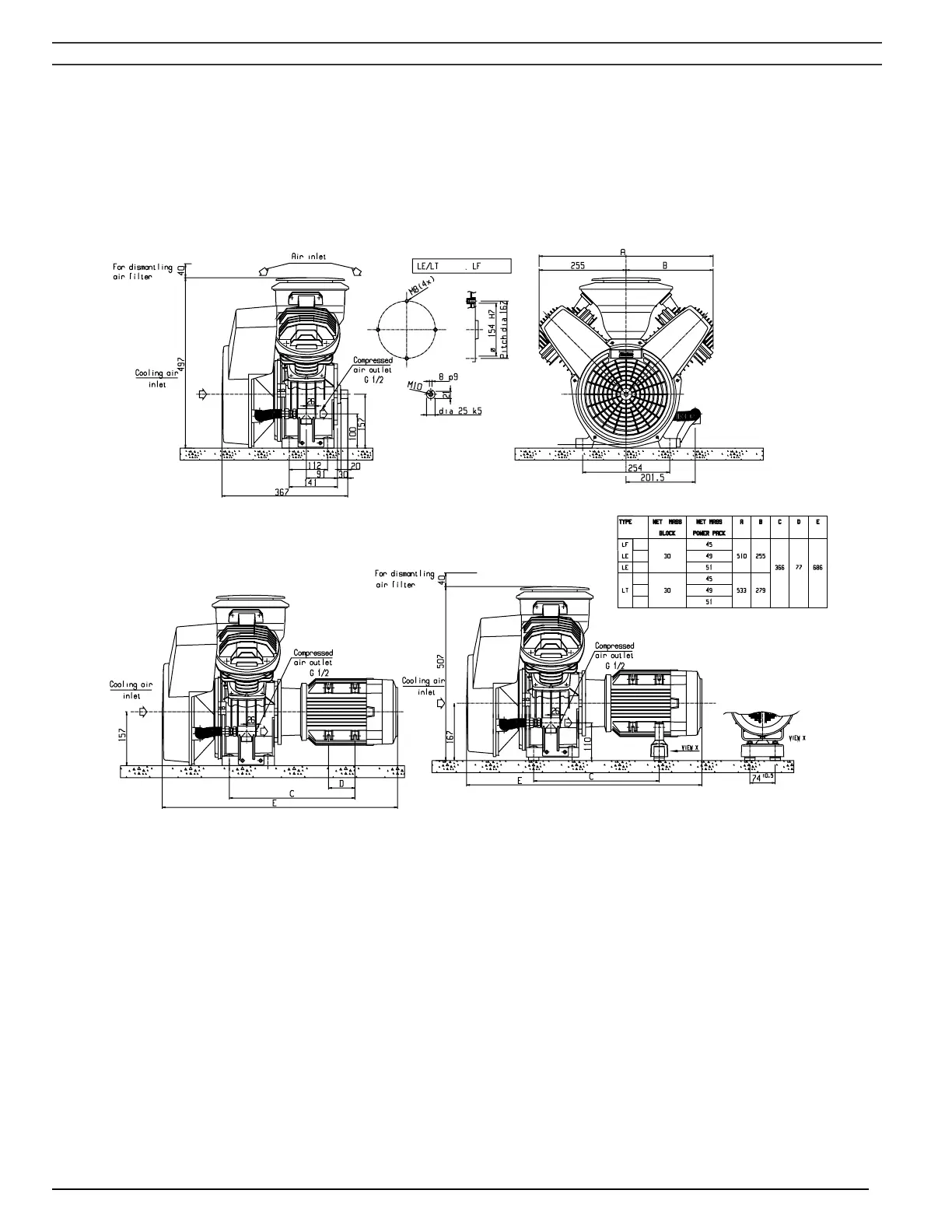 Fig. 2.1 Dimension drawing, LE/LT2 up to -5 and LF2, -3 Power Pack