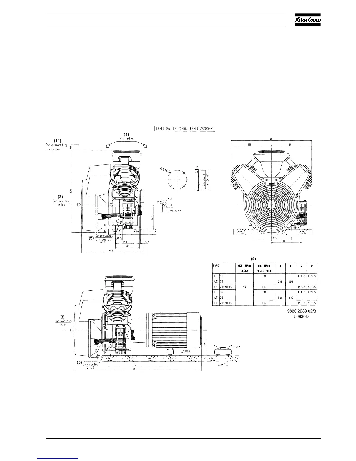 Fig. 2.2 Dimension drawing, LE/LT55/75 and LF40/55 Power Pack