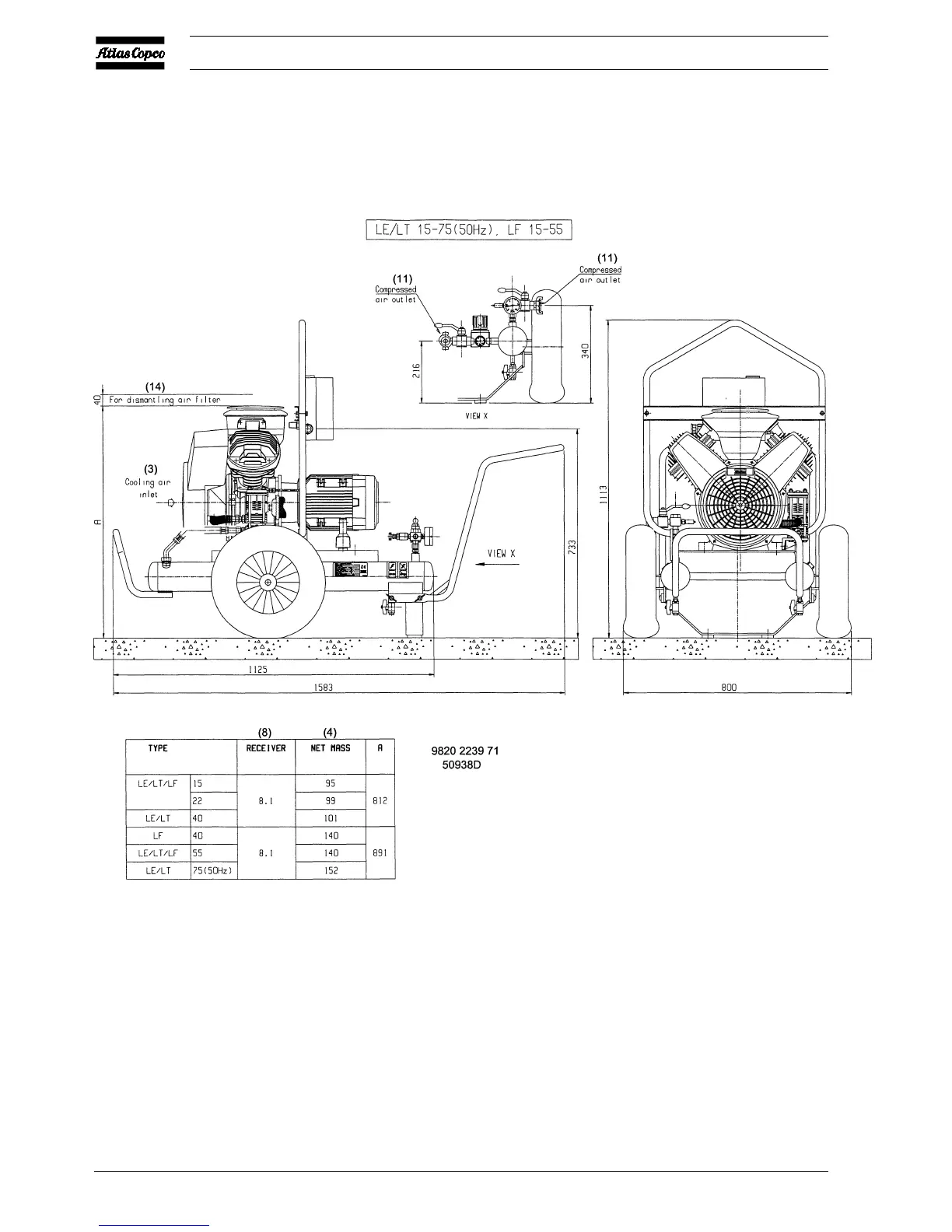 Fig. 2.13 Dimension drawing, LE/LF/LT Trolley with electrical motor