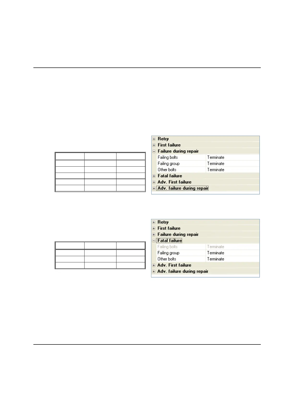 The Fatal failure alternatives are used when a fatal error occurs for the bolt. It offers the following