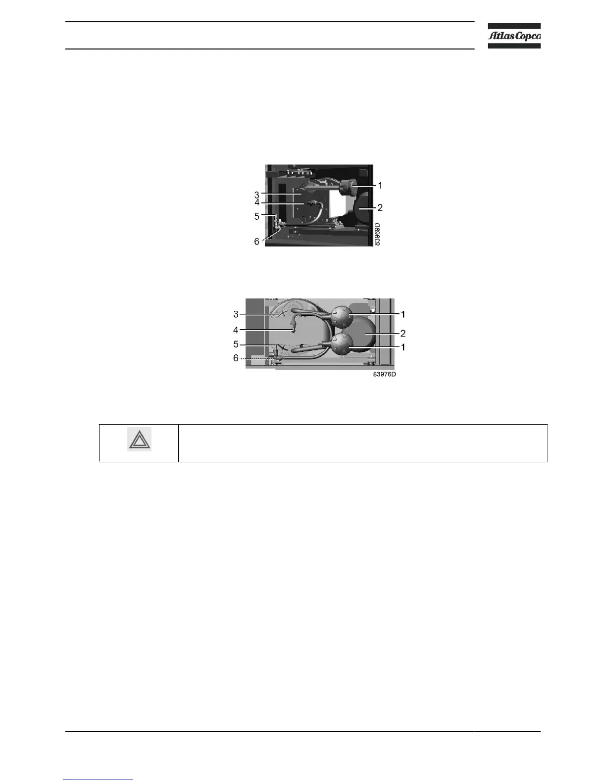 Each compressor element is protected by a PT 1000 sensor (6) in the outlet pipe. The sensor is