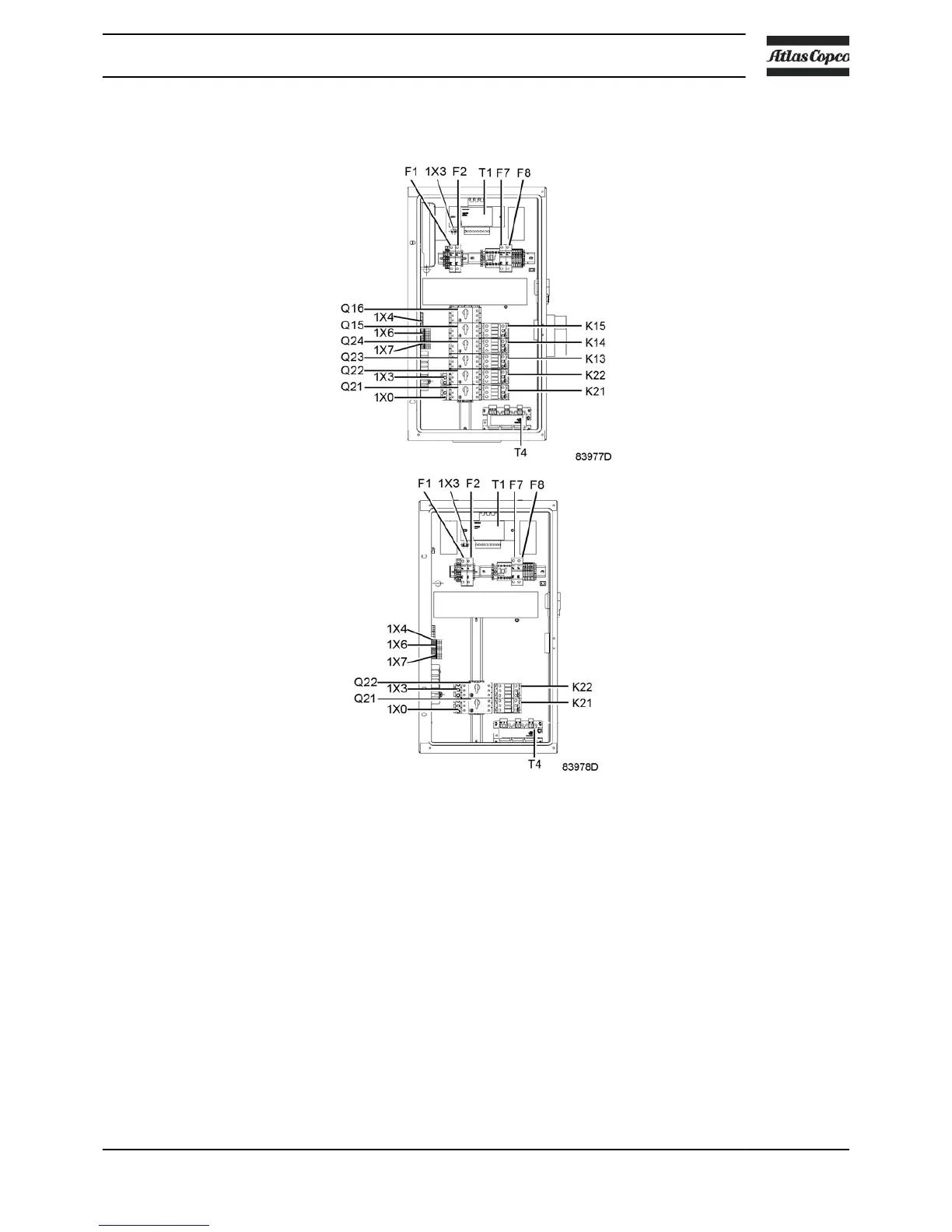conductor to terminal (N) (if applicable) and the earthing conductor to the earthing bolt (1X3).