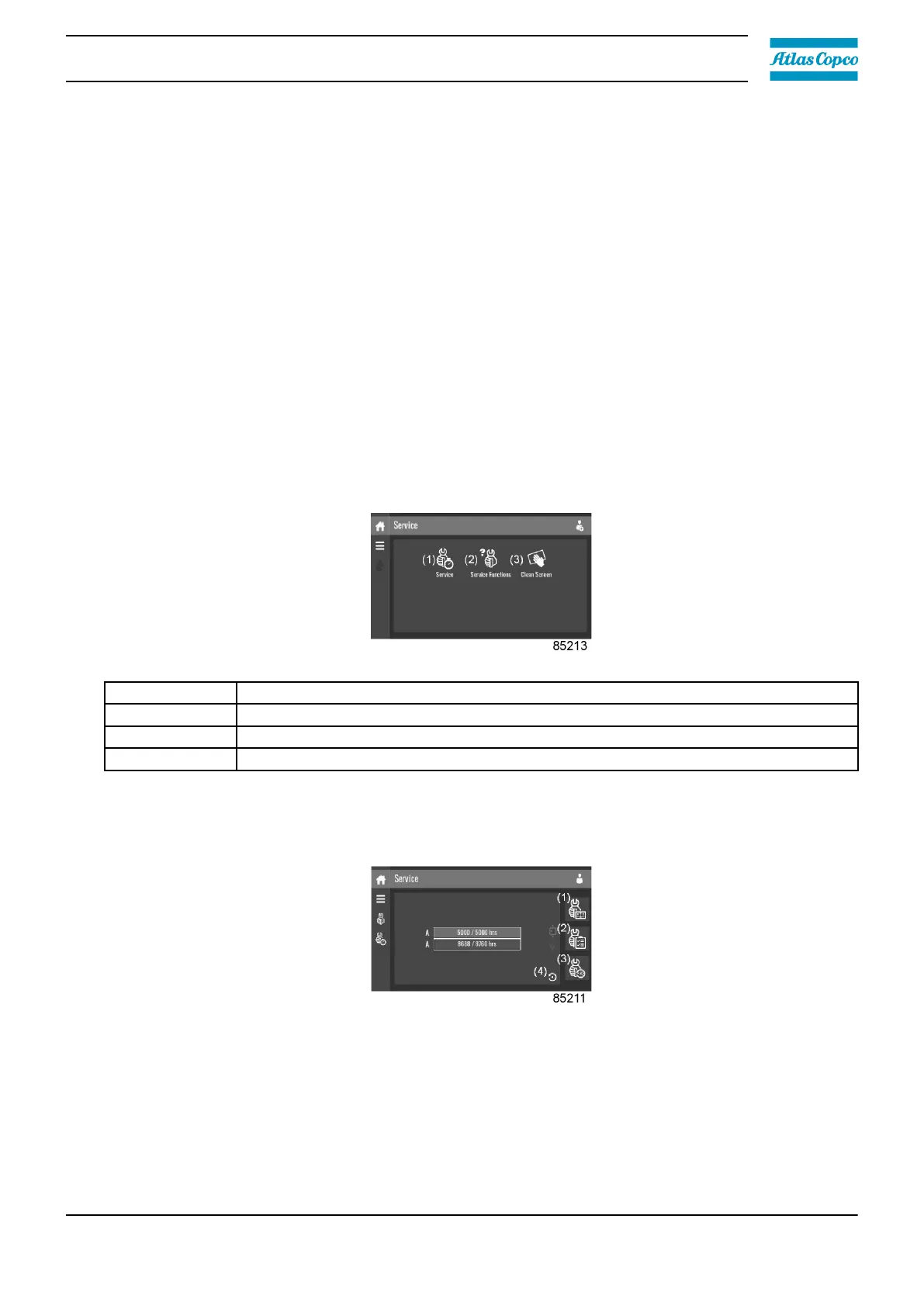 The service plan can be viewed by tapping icon (2). Through this menu, the service plan can be