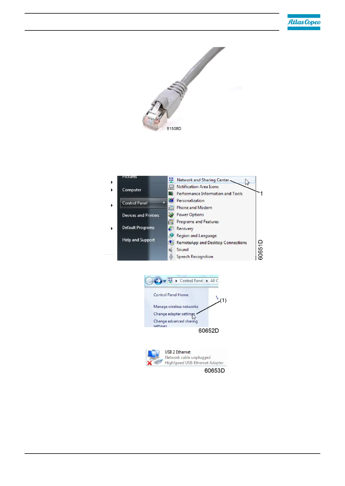 Click on Change adapter settings (1).